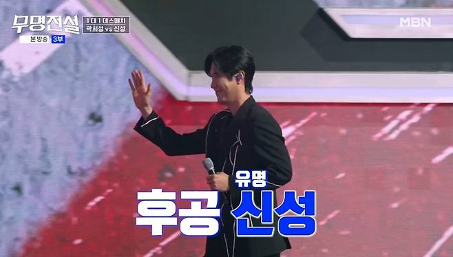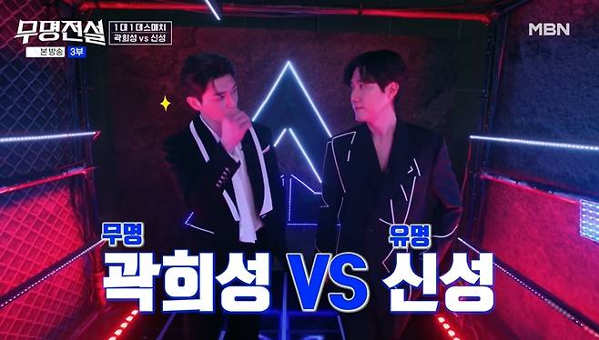지난 8일 방송된 MBN '무명전설'에서는 유명 가수와 무명 가수가 맞붙는 1:1 데스매치가 펼쳐졌다. 이날 신성은 무명 가수 곽희성의 지목을 받아 대결에 나섰다.