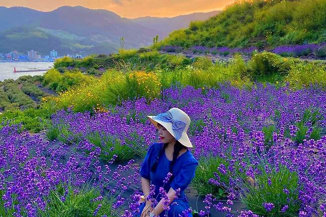 성곽을 따라서 화려하게 피어나 인생 작품을 남길 수 있고 계절에 따라서 라벤더 외에도 수국, 금계국, 해바라기가 피어나는 장소입니다. 산책길 양옆으로 꽃밭이 조성되어 있고 뒤쪽으로 물결치는 바다 풍경이 펼쳐져 모든 공간이 포토스팟입니다.