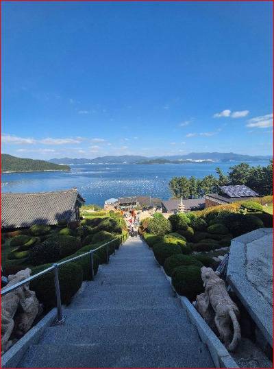 장수암에 도착하면 가장 먼저 마주하는 건 바로 108계단입니다. 이 계단은 단순한 오르막길이 아닙니다. 계단 하나하나마다 걷는 이의 마음을 비우게 하고, 뒤돌아보면 탁 트인 남해 바다 풍경이 함께합니다.계단을 따라 천천히 올라가다 보면 어느새 고요한 사찰 경내에 도달하게 되며, 그곳에서 바라보는 풍경은 한 폭의 동양화처럼 펼쳐집니다.