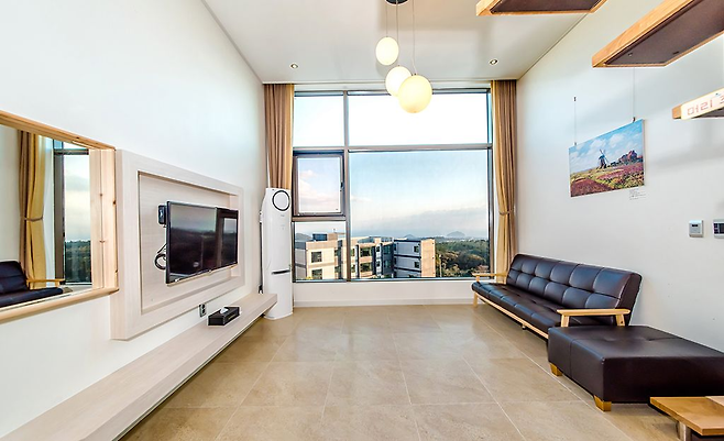 마지막으로 소개할 곳은 애월 소길리에 위치한 더포레스트 애월입니다. 하얀 외관과 넓은 잔디 마당 덕분에 동화 속에 나올 법한 분위기를 자아내는 숙소로, 감성적인 사진을 남기기에 최적의 장소입니다. 복층 구조로 이루어진 실내는 공간이 넓어 가족 단위나 친구들끼리도 편안하게 머물 수 있습니다.