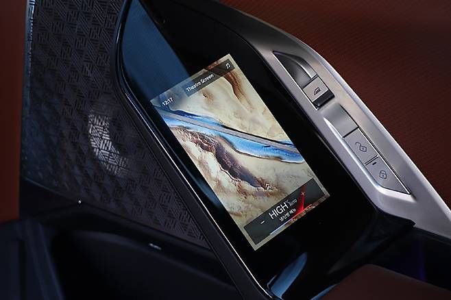7세대 7시리즈 인테리어의 하이라이트는 대형 곡면형 디스플레이에 뒷좌석의 시어터 스크린을 채용한 것이다. 메르세데스 EQS의 하이퍼스크린과 뚜렷이 다른 접근 방식이다. 2022 CES를 통해 소개된 BMW 시어터 스크린은 많은 전문가들은 2~3년 후에나 일반 차량에서 만날 거로 전망했었으나 플래그십 7시리즈의 데뷔에 맞춰 앞당겼다. 이는 분명 혁신이다. 그동안 앞 시트 헤드레스트 뒤에 태블릿을 설치하며 망설여왔던 것을 BMW가 깬 것이다.