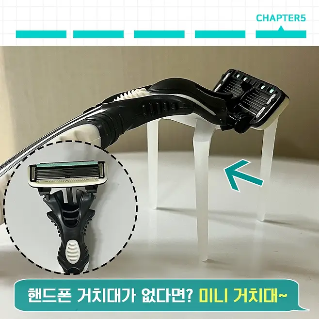 삼발이를 세워두고 그 위에 면도기를 올려둬서 그냥 놔둘 때보다 물기도 금방 말라서 위생에도 좋고 위험한 칼날을 세워두면 훨씬 안전하니 최고 인정!