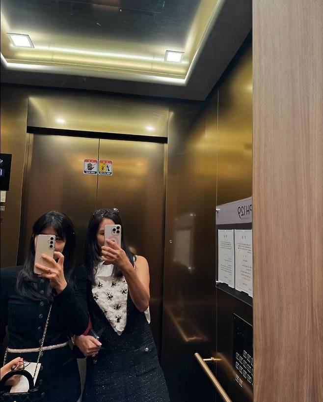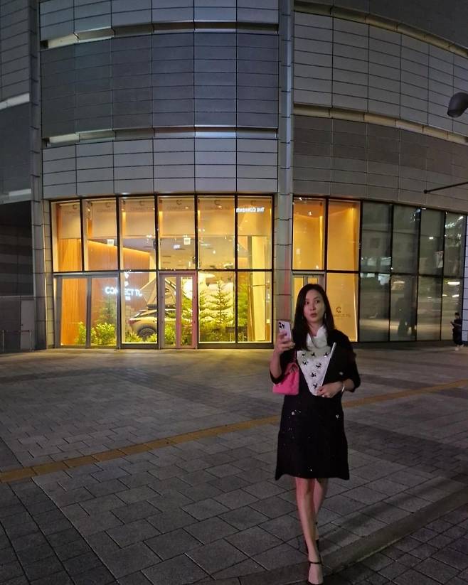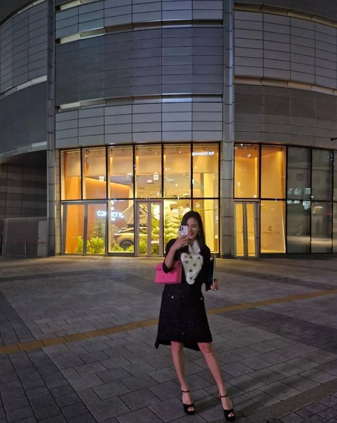 또, 고소영은 블라우스 위에 블랙 트위드 원피스를 레이어드해 화려하고 고급스러운 분위기를 자랑했습니다.