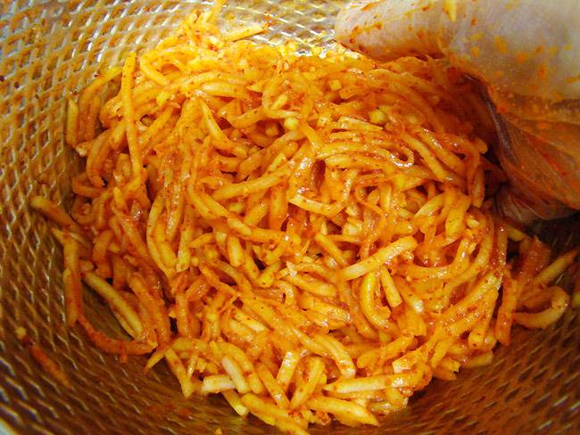 무생채는 익히지 않은 생채소에 양념을 바로 더하는 방식으로 만들어집니다.