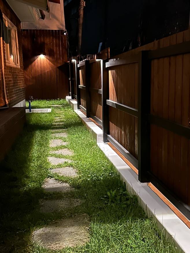 마당 곳곳에는 태양열로 작동하는 간접 조명을 달아주어, 밤에도 마당에서 산책하거나 맥주 한 잔 하기 좋아요 :)