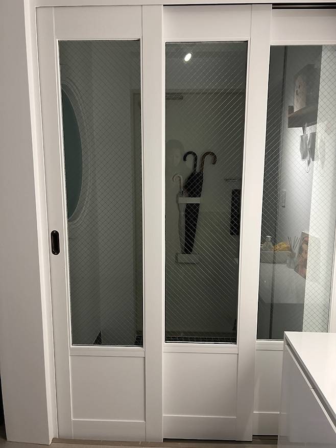 기존 집주인 분께서 중문을 최근에 교체하셔서 그런지 깔끔한 3단 중문이어서, 화이트 톤으로 도색만 진행하였습니다. 한기도 막아주고 깔끔한 게 정말 예뻐요 :)