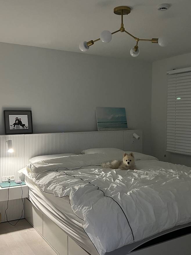 침실에는 킹 사이즈 침대와 작은 화장대, 강아지 방석 정도만 배치했습니다.