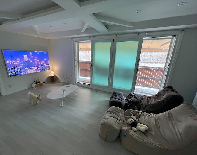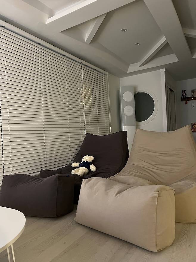 무엇보다 저희 콩이가 무척 좋아하는 빈백 ㅎㅎㅎ 거실 공간 활용이 애매하다 싶은 분들은 빈백 정말 추천 드려요! 생각보다 편안하고 TV 보기에도 진짜 좋은 것 같아요.