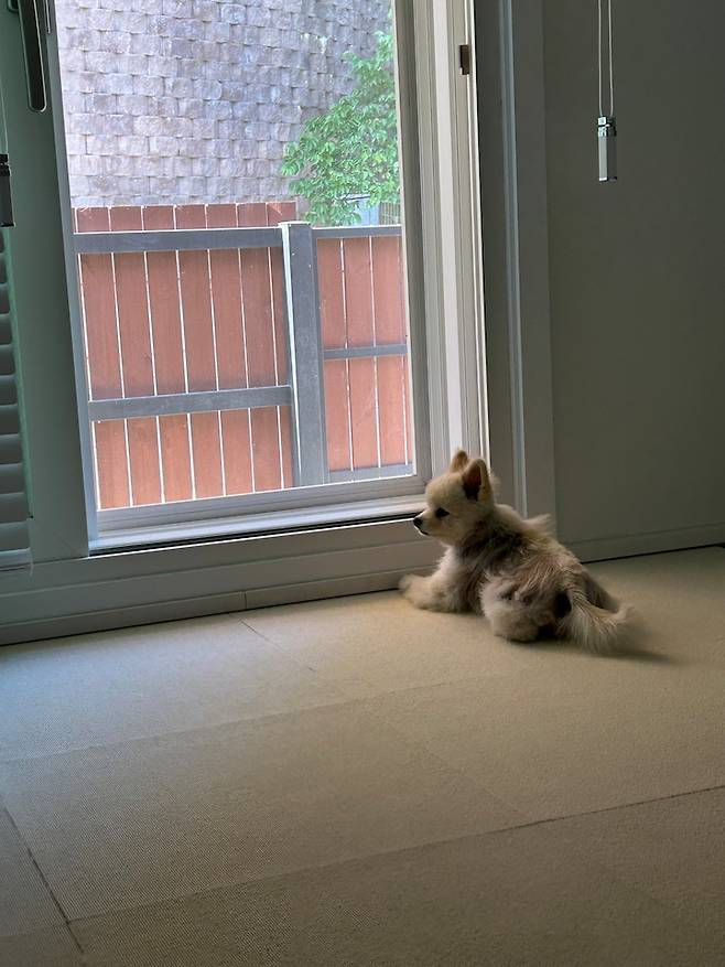 여름에는 시원하게 마루 바닥 그대로 두었는데, 겨울에는 춥고 무엇보다 강아지가 자꾸 미끄러지는 것 같아서 지금은 바닥 전체에 카펫을 깔아주었습니다. (셀프로 작업했어요)