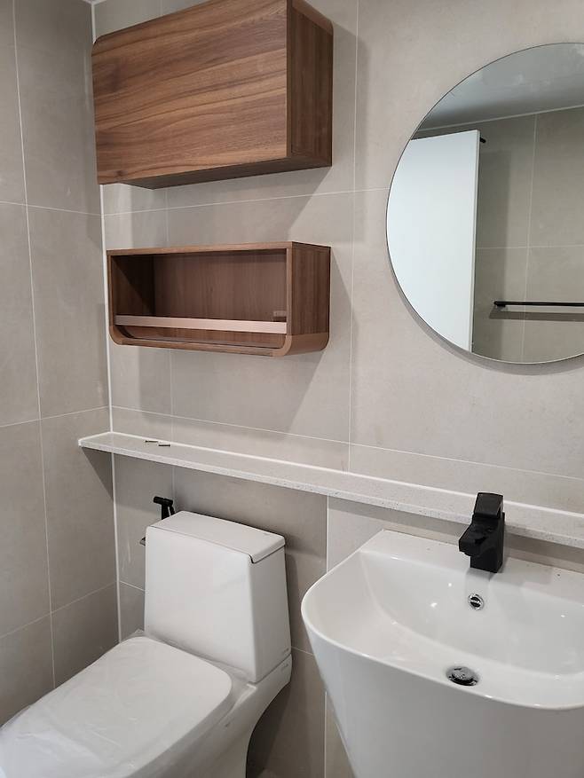 제일 중요한 공간이라고 생각했던 화장실 및 욕실입니다. 평소에 눈에 계속 들어오던 조적 화장실 및 욕실을 원했고, 인테리어 업체와 자재 및 디자인을 상세하게 상의 후 진행했습니다.