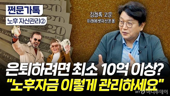 국내 최고 은퇴전문가로 꼽히는 김경록 미래에셋자산운용 고문은 머니투데이 증권 전문 유튜브 채널 '부꾸미-부자를 꿈꾸는 개미'와의 인터뷰에서 "은퇴자산의 원금을 꼭 지켜야 한다는 생각을 할 필요가 없다"며 "나의 자산을 살아있는 동안 점차 줄여 나가면 된다"고 밝혔다.