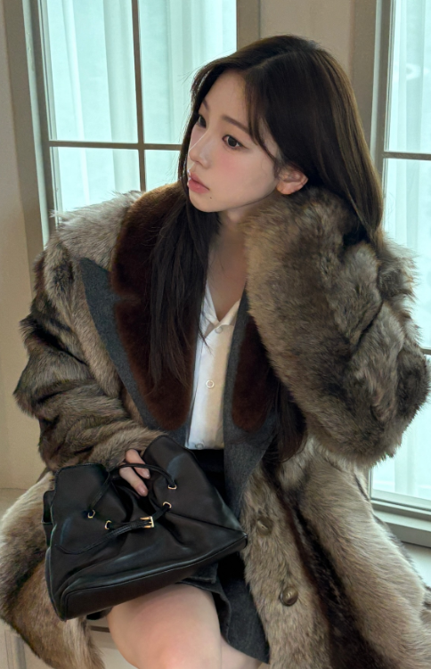 카리나 님이 걸친 퍼자켓은 전체 룩에 고급스러움을 더하는 핵심 아이템이었어요. 퍼 소재는 따뜻하면서도 풍성한 느낌을 주어, 그녀의 세련된 매력을 한층 강조했습니다.