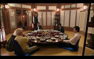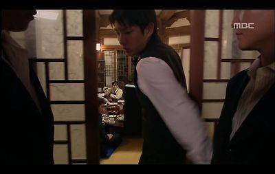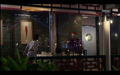 웨이터로 변장해 도청기를 붙이러 들어가는 수현