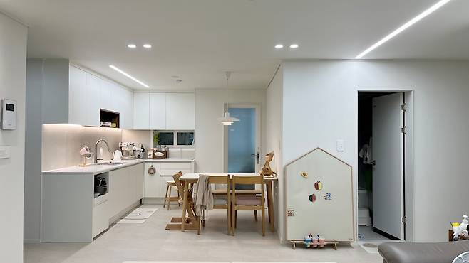 문제는 예쁜 집에 살고 싶지만, 정해진 예산은 한정적이라는 점! 28평 기준 예산 3천만 원으로 올 리모델링한 우리 집의 실속 있는 가성비 고급 시공 팁 3가지를 알려드릴게요. 라인 조명, 9mm 문선, 폴딩도어, 졸리컷시공, 실링팬 등 요즘 나름 유행하는 인테리어 요소들이 다 들어갔답니다.