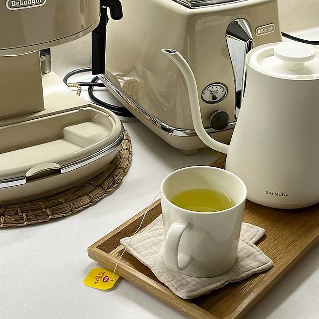 아이 재우고 차 한잔할 수 있는 홈 카페 존, 신혼 때 선물 받은 커피머신은 5년째 사용 중이에요.