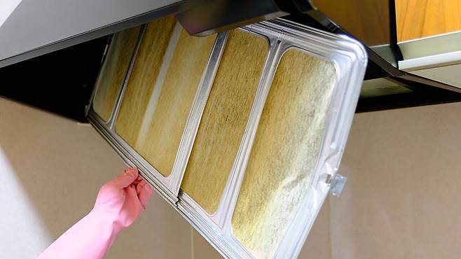 필터 표면의 기름은 상온에서 쉽게 굳어 바로 닦아내기 어렵다. 이때 열을 먼저 이용하면 훨씬 수월해진다. 필터 전체에 뜨거운 물을 흘려보내면 금속 틈새까지 열이 전달돼 기름막이 자연스럽게 풀린다. 서서히 풀리기 시작할 때가 세제를 바르기 좋은 시점이다.