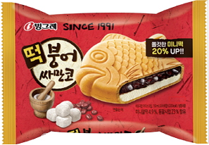 과자 안에 아이스크림과 쑥떡이 들어가 조금 더 든든한 맛을 자랑하는 찰떡 국화빵. 따뜻한 국화빵보다 쉽게 만날 수 있지만, 만날 때마다 반가운 녀석. 일반 국화빵 아이스크림엔 하얀 떡이 들어 있는데, 요 녀석에는 쑥떡이 넓적하게 누워있다. 쑥떡 맛 때문인지 더 전통적인 느낌이다. 엄마와 함께 먹으면 더 맛있을 것 같은 그런 느낌의 모나카다.
