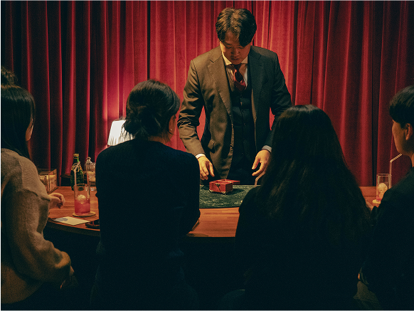 마술사의 퍼포먼스를 코앞에서 볼 수 있지.