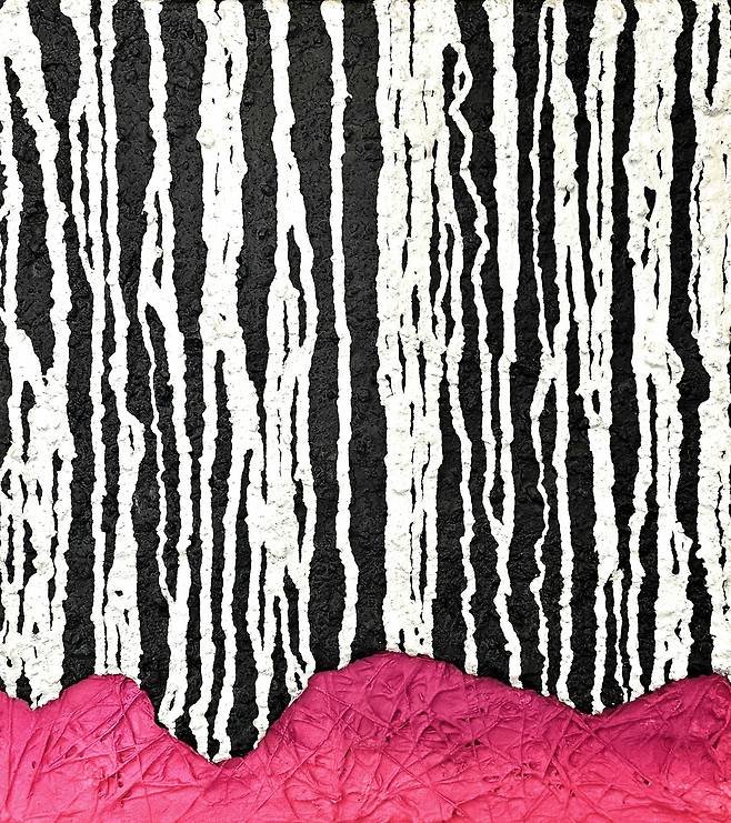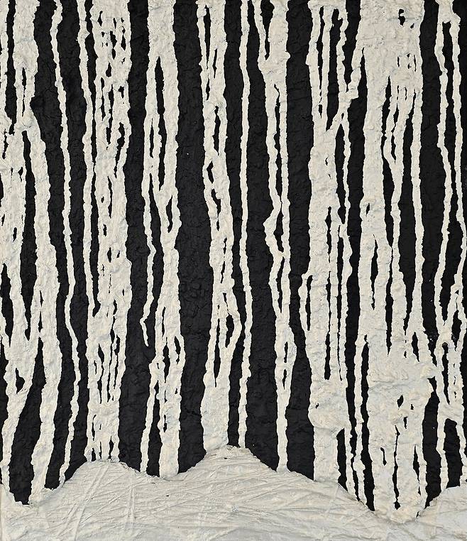 검은 연탄과 대조적인 진줏빛 불규칙한 선들은 아름다운 추억을 추상적으로 표현하여
