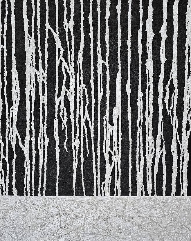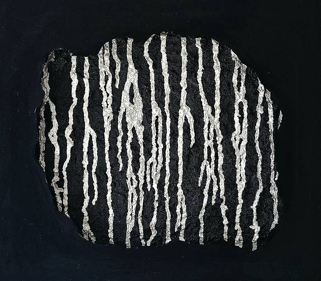 검은 연탄과 섬세한 진줏빛 선의 병치를 통해 추억을 캔버스에 담아낸 작품이다.