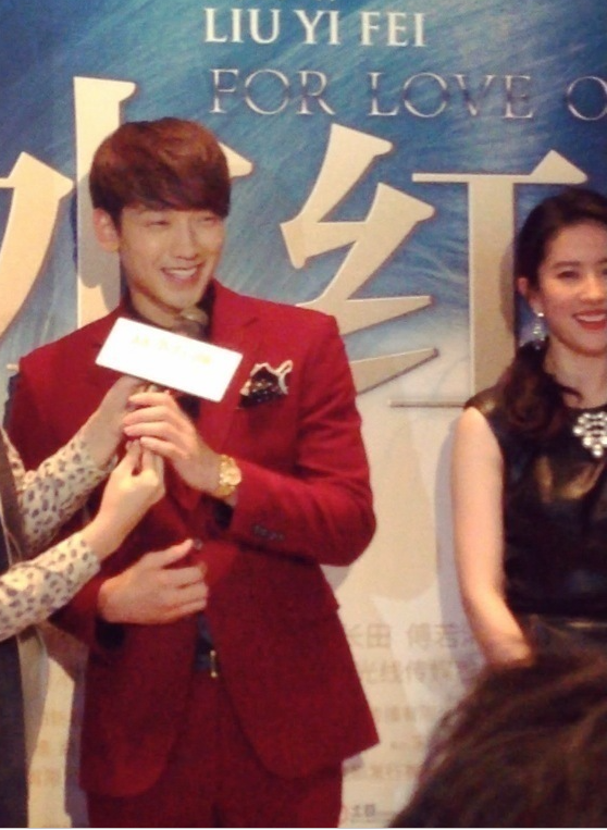 가수 겸 배우 비는 중국 베이징에서 열린 기자회견에서 상대역이었던 유역비에 관한 극찬을 남겼습니다.