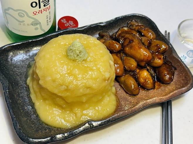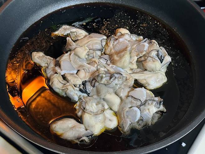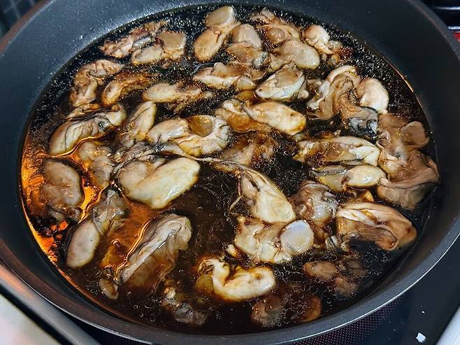굴을 쪼리면서(?) 무 스테이크 소스를 준비합니다.