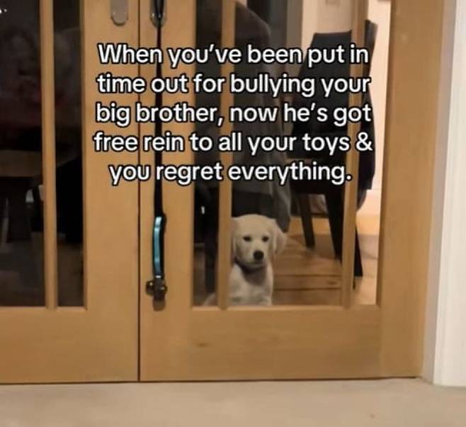 태어난지 약 10주 된 아기 골든 리트리버 강아지가 형과의 놀이 도중 타임아웃을 당한 영상이 SNS상에 공개돼 많은 이들을 웃음 짓게 한 것.