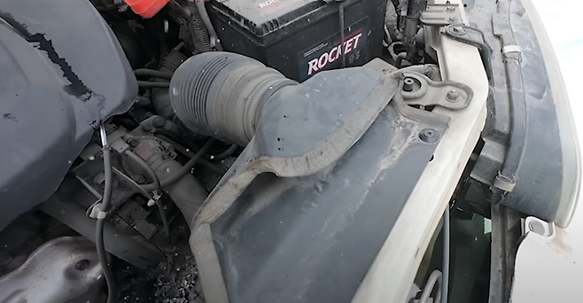 수위를 조금 더 높이니 흡기에 물이 들어가지도 않은 상황이고 수위가 얼마 증가하지도 않은 상태에서 시동이 꺼져버리게 되는 모습을 볼 수 있었습니다. 이 말은 즉 산 번호판 상단부근에 각종 중요한 전자 장치들이 있다고도 볼 수 있는 것입니다.