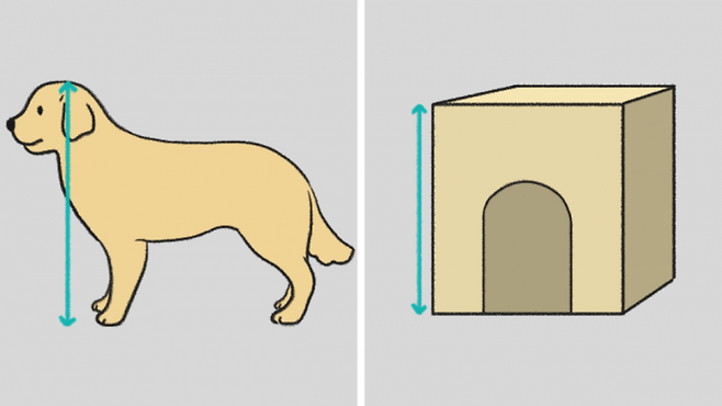 참고로, 강아지 이동장이나 집의 크기를 정할 땐, 사용하기 편하도록 키가 아닌 발부터 머리까지의 높이를 기준으로 봐요. 발부터 머리까지의 높이보다 25~50% 여유가 있는 것으로 고른답니다.