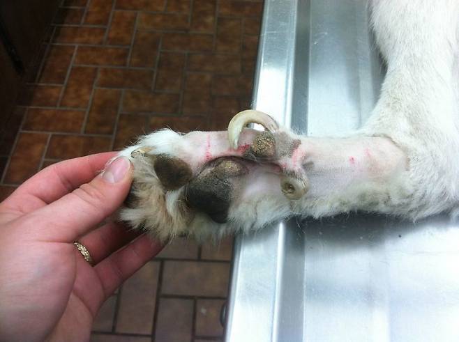 또, 그레이트 피레니즈처럼 험난한 지형에서 사는 견종의 경우 며느리 발톱이 두 개씩 있기도 합니다.