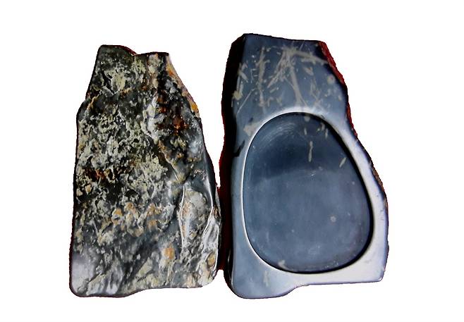 서유구의 말대로 제일 좋은 벼루 원석은 금사문석입니다. 이는 검은색의 암석에 금색 광택을 보이는 미세한 입자의 돌로 원석을 떼어낼 때 보면 비석을 만드는 오석 검은색 돌과 흡사합니다.