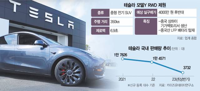 테슬라는 이번 모델Y 출시를 계기로 한국에서 반등을 노리고 있다. 수입 전기차 시장에서 승승장구하던 테슬라는 올해 들어 고전을 면치 못하고 있다. 판매량(신규 등록 기준)은 2021년 1만 7826대, 2022년 1만 4571대에서 올 상반기 3732대로 감소 추세다. 국내 수입차 순위도 지난해 5위에서 올해 9위로 밀렸다.