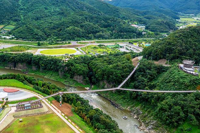 포천 한탄강을 찾는 이들이 가장 먼저 발길을 옮기는 곳은 단연 Y자형 출렁다리다.