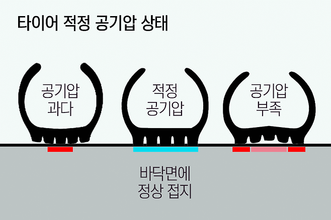 타이어 공기압이 적정하지 않으면 핸들 떨림 및 쏠림으로 주행할 때 위험할 수 있어요. 연비와 승차감에도 좋지 않죠.