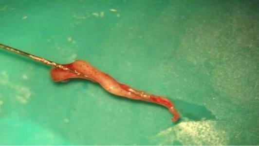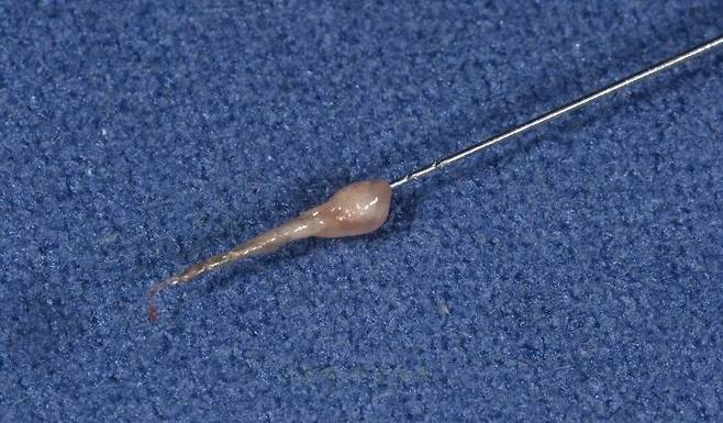 트위스트되어서 딸려나오는 신경조직