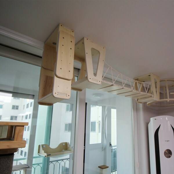 캣워커 사이에 흔들다리가 있는 제품이에요. 그래서 고양이가 캣워커를 뛰지 않고도 오를 수 있어 좋답니다.