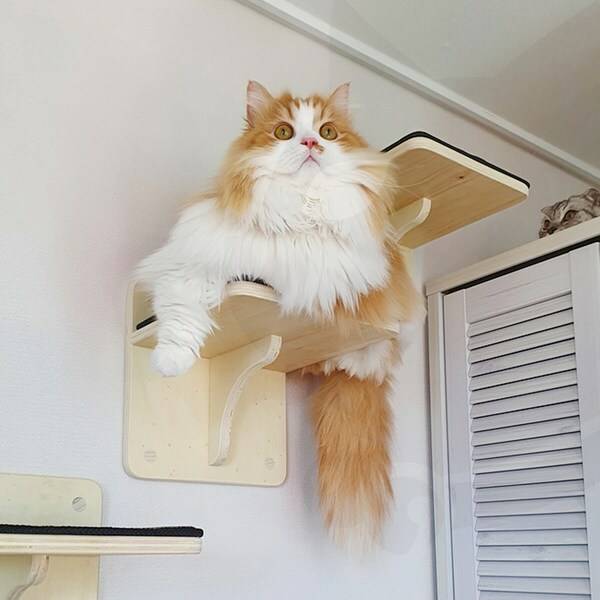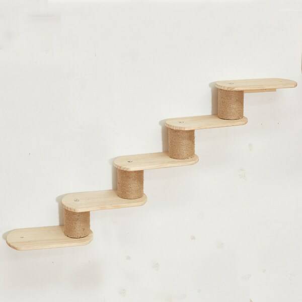캣워커는 발판이 많을수록 좋습니다. 이때, 발판 간격이 너무 넓으면 고양이가 오르려다 미끄러져 다칠 수도 있습니다. 특히, 관절이 약하거나 다리가 짧은 고양이라면 발판 간격에 신경을 써야 합니다.