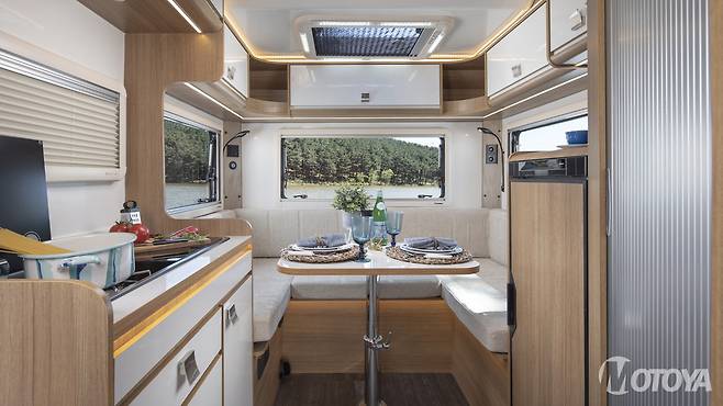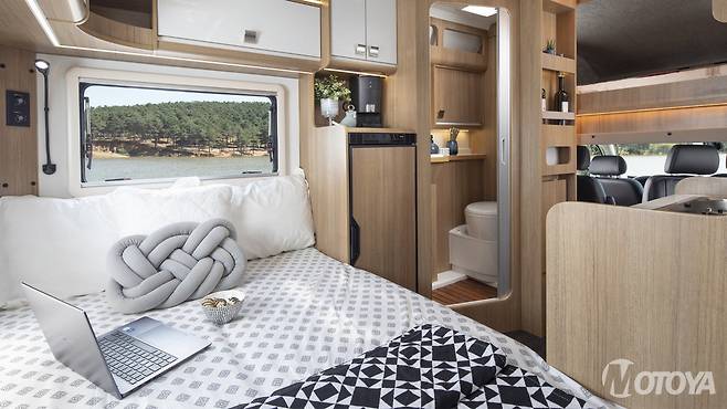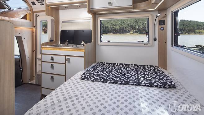 여기에 일체형으로 제작된 모노블록 구조의 캐빈을 얹혀 모터홈으로 만들었다.
