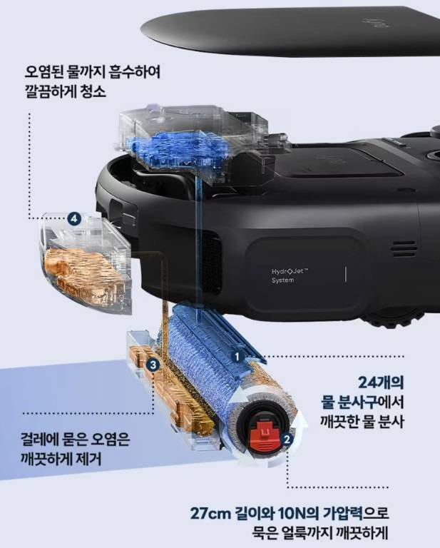 HydroJet™실시간 자동 세척 물걸레 시스템