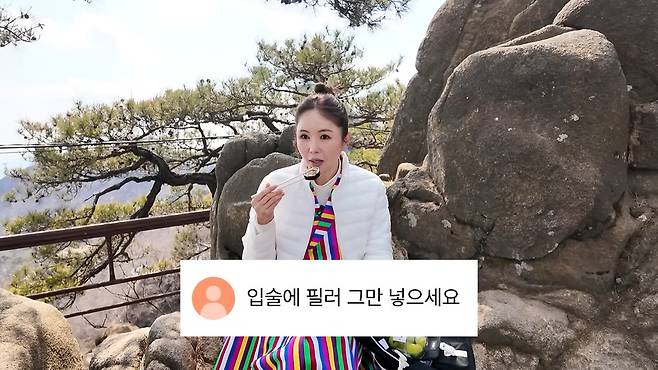 관악산을 정복하고 정상에 오른 장영란은 자신의 영상에 달린 시청자들의 댓글로 막간 Q&A 콘텐츠를 진행했다.