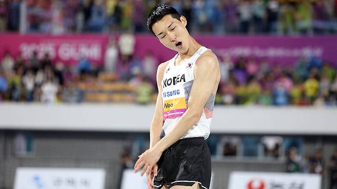 우상혁은 어제(29일) 경북 구미시민운동장에서 열린 2025 아시아육상경기선수권대회 남자 높이뛰기 결선에서 2m29를 넘어 정상에 올랐습니다.