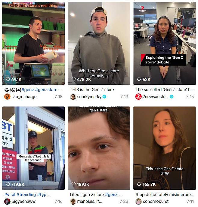 요즘 Z세대에게는 상대방의 물음에 무표정으로 2~3초간 응시하다가 답하는 ‘젠지 스테어(Gen Z stare)’ 현상이 나타나고 있다고 해요. Z세대(1990년대 후반~2010년대 초반 출생)라는 뜻의 ‘Generation Z(Gen Z)’와 ‘stare(응시)’를 합친 신조어로, 틱톡에서는 밈으로 활발히 공유되고 있어요.