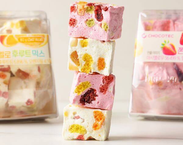 편의점 GS25는 상큼하게 마시멜로우를 즐길 수 있는 신제품 ‘초코텍 쫀득멜로’ 2종을 출시했다. 버터의 고소한 풍미에 마시멜로우의 푹신하고 쫀득한 식감을 즐길 수 있는 제품이다. 상큼하게 즐기는 ‘초코텍 쫀득멜로 딸기’, 다양한 맛을 한 번에 즐길 수 있는 ‘초코텍 쫀득멜로 후루트믹스’의 2종으로 출시됐다. 편의점 판매가는 딸기와 후루트믹스 두 제품 모두 동일하게 3,700원으로 책정됐다.