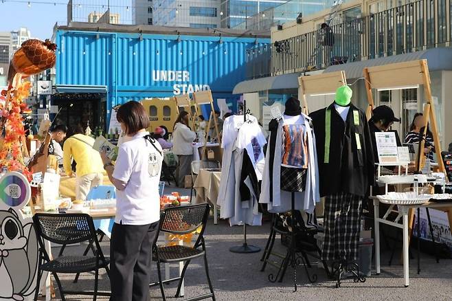 커먼그라운드와는 달리 형형색색의 색으로 이뤄진 컨테이너가 인상적입니다. 또한 서울숲까지 이어지는 중앙광장 통로에서는 종종 소셜벤처, ESG와 관련된 플리마켓이 열려 독특한 기념품도 사 갈 수 있답니다.