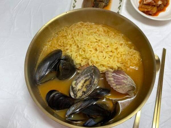 갓김치의 알싸한 맛과 해산물의 신선한 맛이 어우러져 독특한 풍미를 자랑합니다. 특히 김밥 속 재료가 푸짐하게 들어가 있어 한 끼 식사로도 충분합니다.