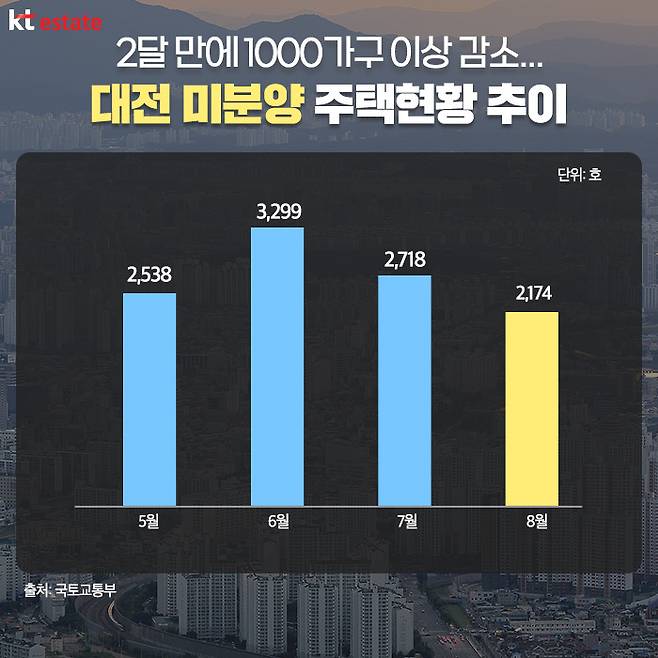 이러한 상황에서 서울, 인천, 대전 등 일부 대도시에서는 미분양이 해소되는 모습이 있어 주목받습니다. 대전은 올해 6월 미분양 주택 수가 3299호를 기록하며 급격하게 증가했다가 8월에는 다시 2174가구로 1000가구 이상 급감했습니다.