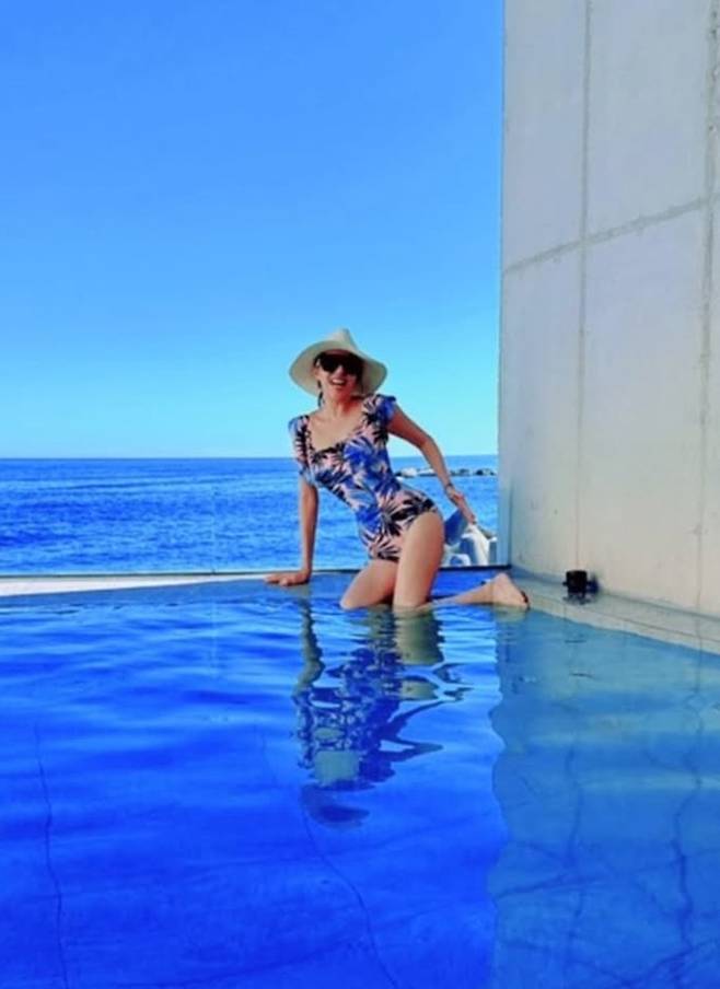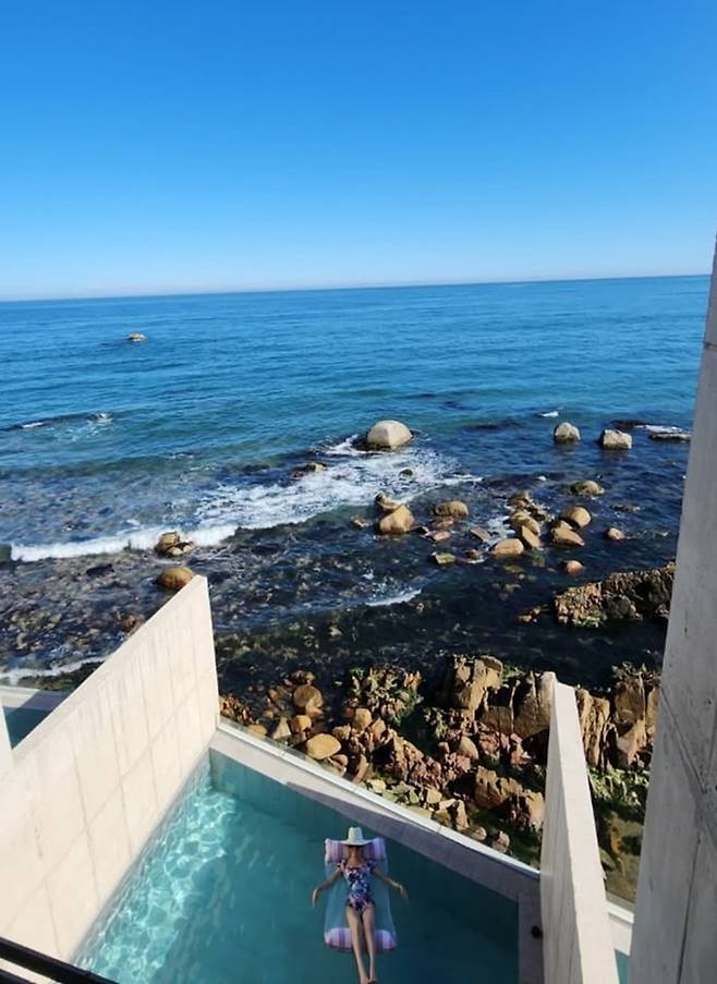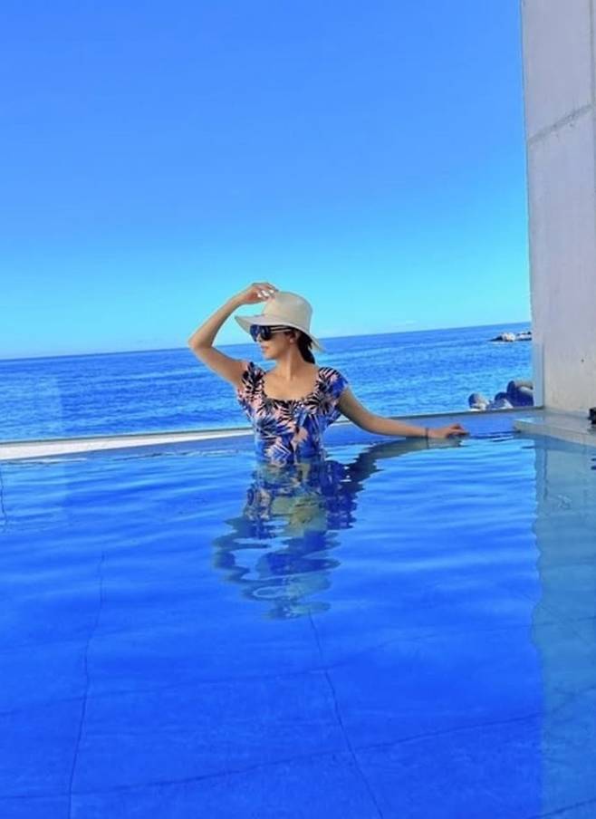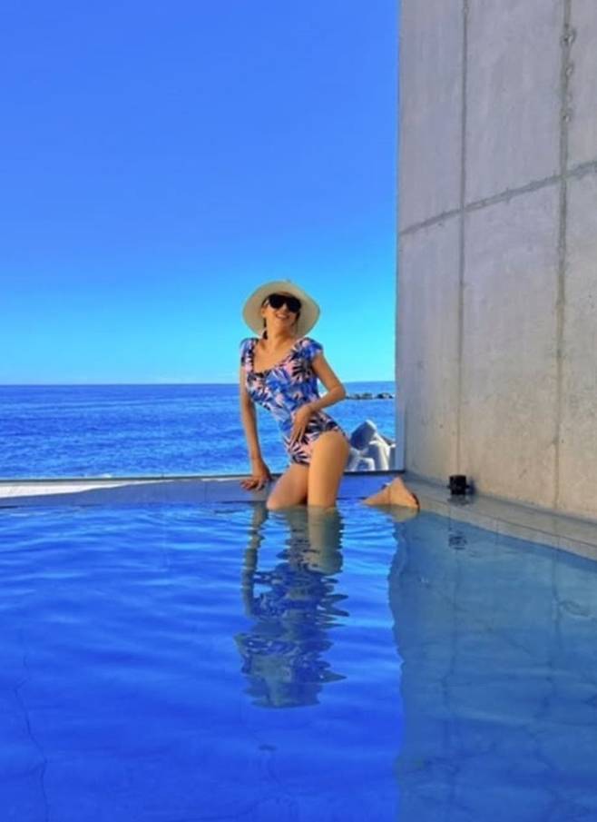 김완선은 26일 자신의 채널에 푸른 바다가 내려다 보이는 풀빌라 수영장에서 바캉스를 즐기는 모습을 공개했다.