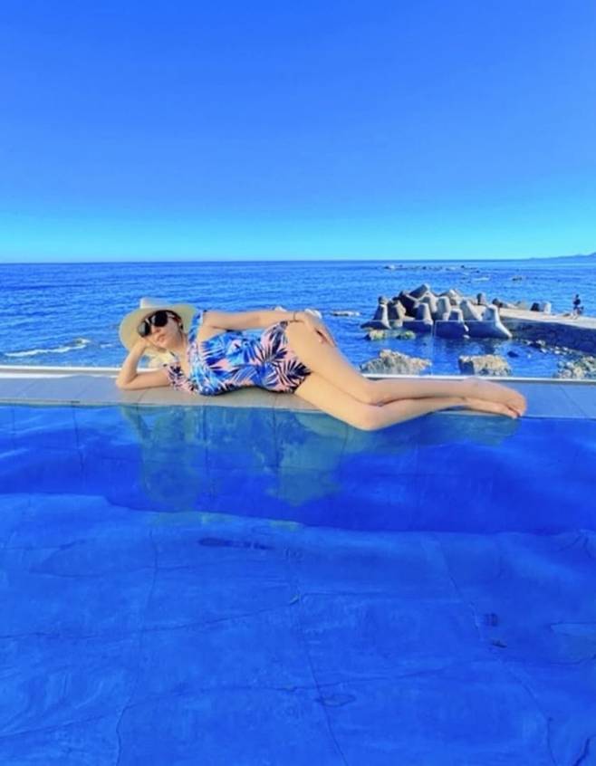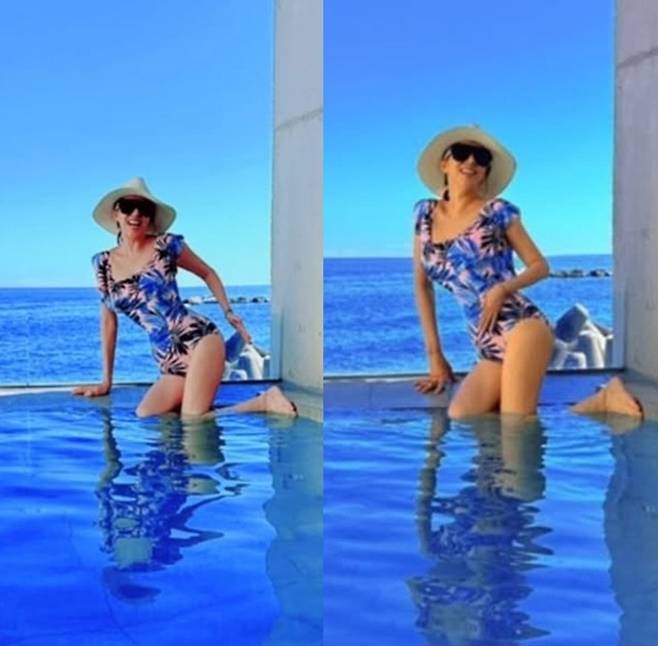 가수 김완선이 플로럴 원피스 스윔웨어로 50대 나이 잊은 잘록 S라인을 뽐냈다.