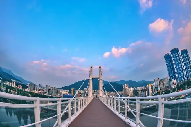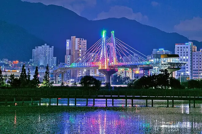 해가 지면 조명이 하나둘 켜지며 다리 전체가 황금빛으로 물든다. 시원한 강바람과 함께 여유롭게 걸을 수 있는 부산 북구의 이 강변길은 야경 명소를 찾는 이들에게 더없이 좋은 선택지다.