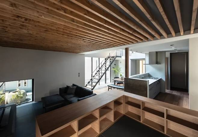 겉보기에는 깔끔한 검은 집이지만, 내부로 들어가면 예상보다 훨씬 따뜻하고 풍부한 공간이 펼쳐집니다. 부모 세대와 가깝게 살면서도 독립적인 생활을 원하는 가족에게 좋은 예가 될 주택입니다.
